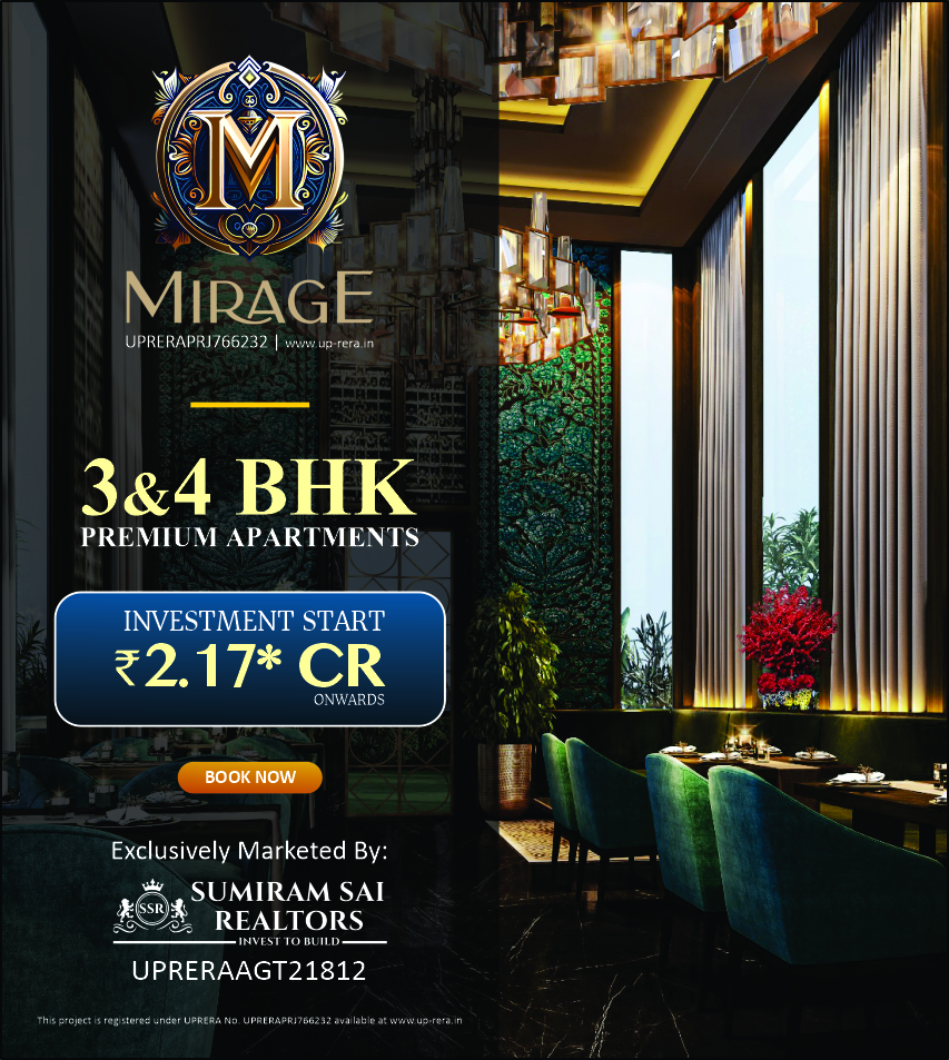 Situated in Noida's Sector 120, RG Mirage is a stunning Luxury residential development covering 2.27 acres. The building consists of two 28-story high-rise towers (G+28) that provide large 3/4 BHK + study apartments. These apartments have an amazing 11-foot ceiling and range in size from 2180 to 2845 square feet, providing an open and spacious living area.