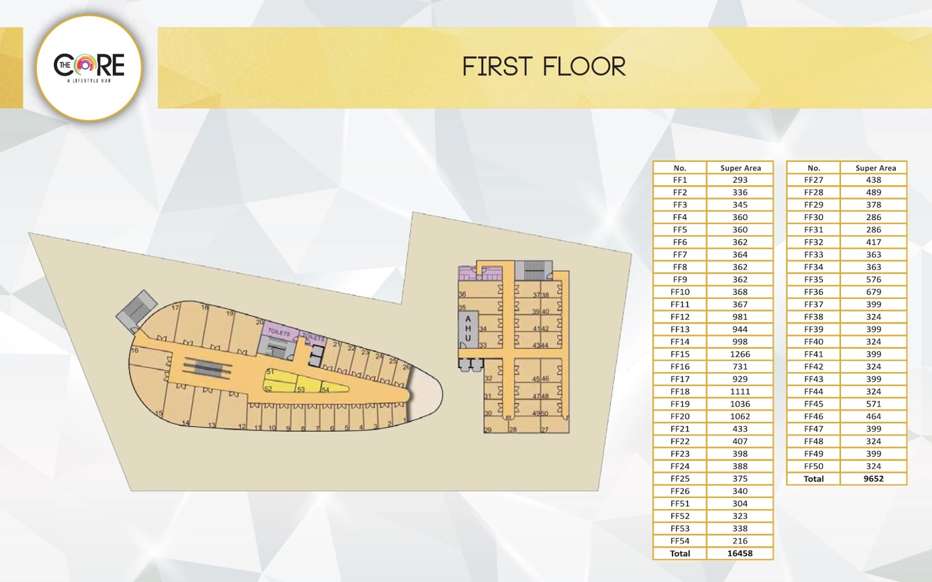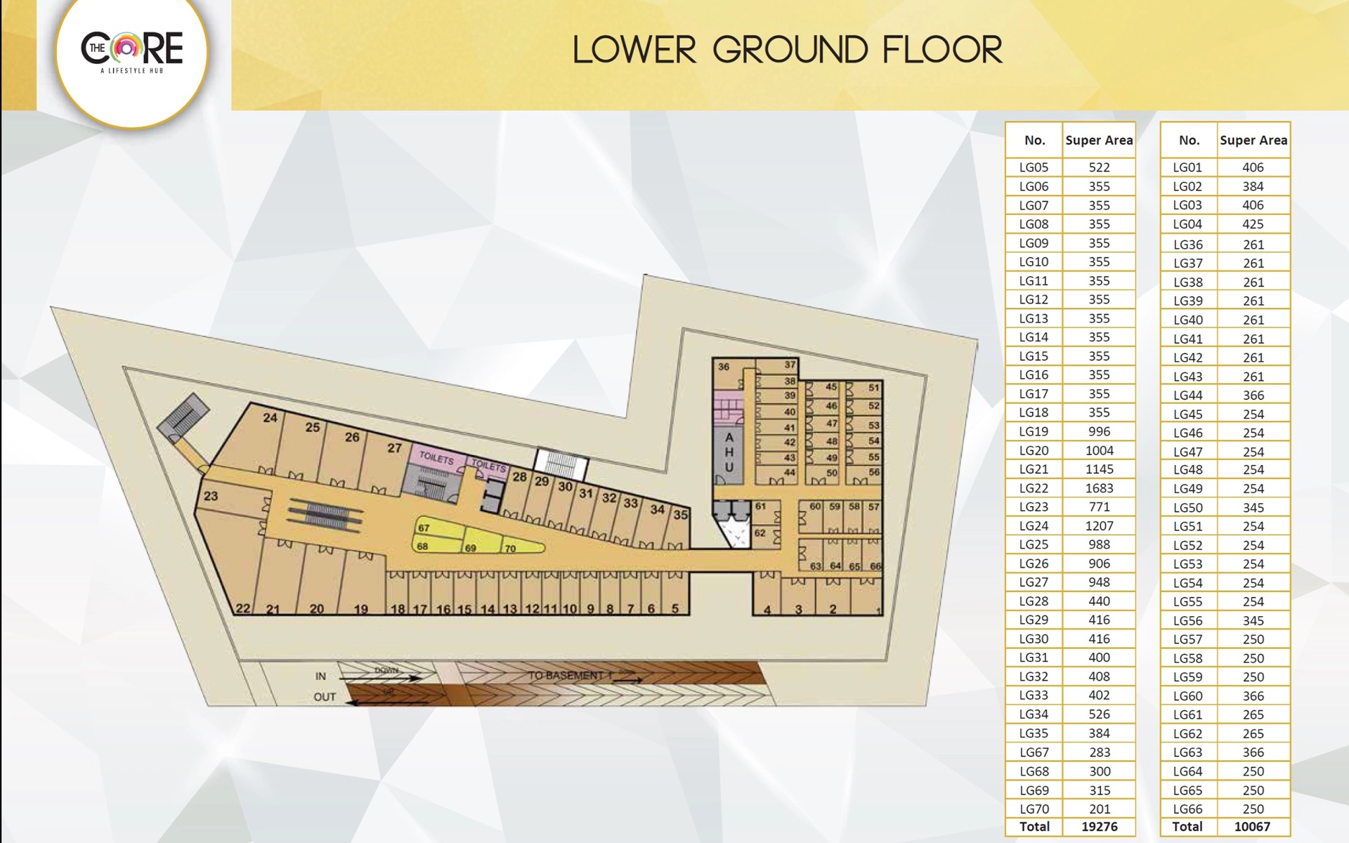 The different levels of The Core Mall have been planned in such a way that retail shops, commercial units, and visitor movement are distributed in a balanced manner throughout the project.