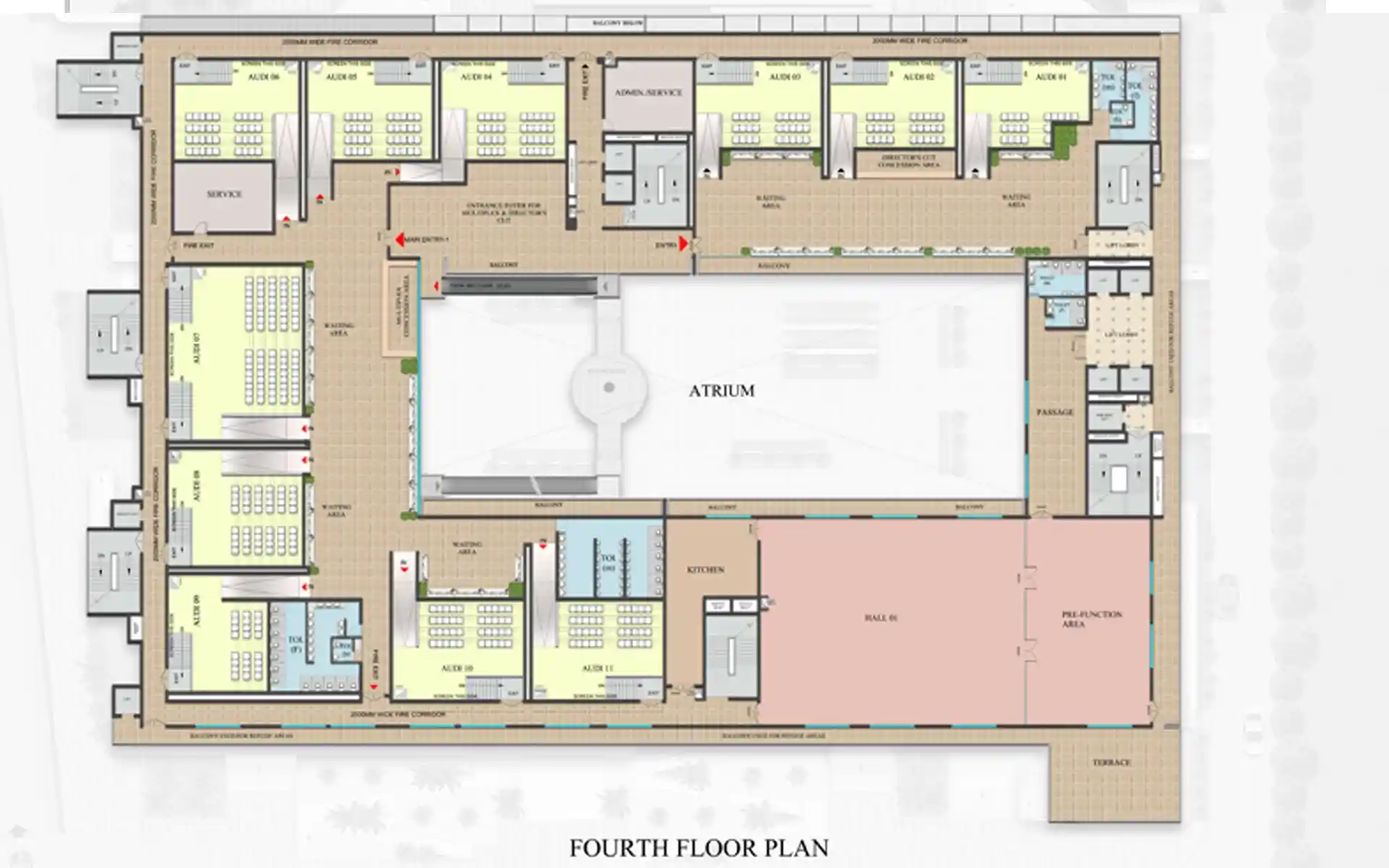 A. The food court is a planned, dedicated section within the project rather than scattered stalls. This creates a consistent dining destination that draws repeat visitors, particularly on weekends and evenings, which supports the broader footfall across the rest of the project.