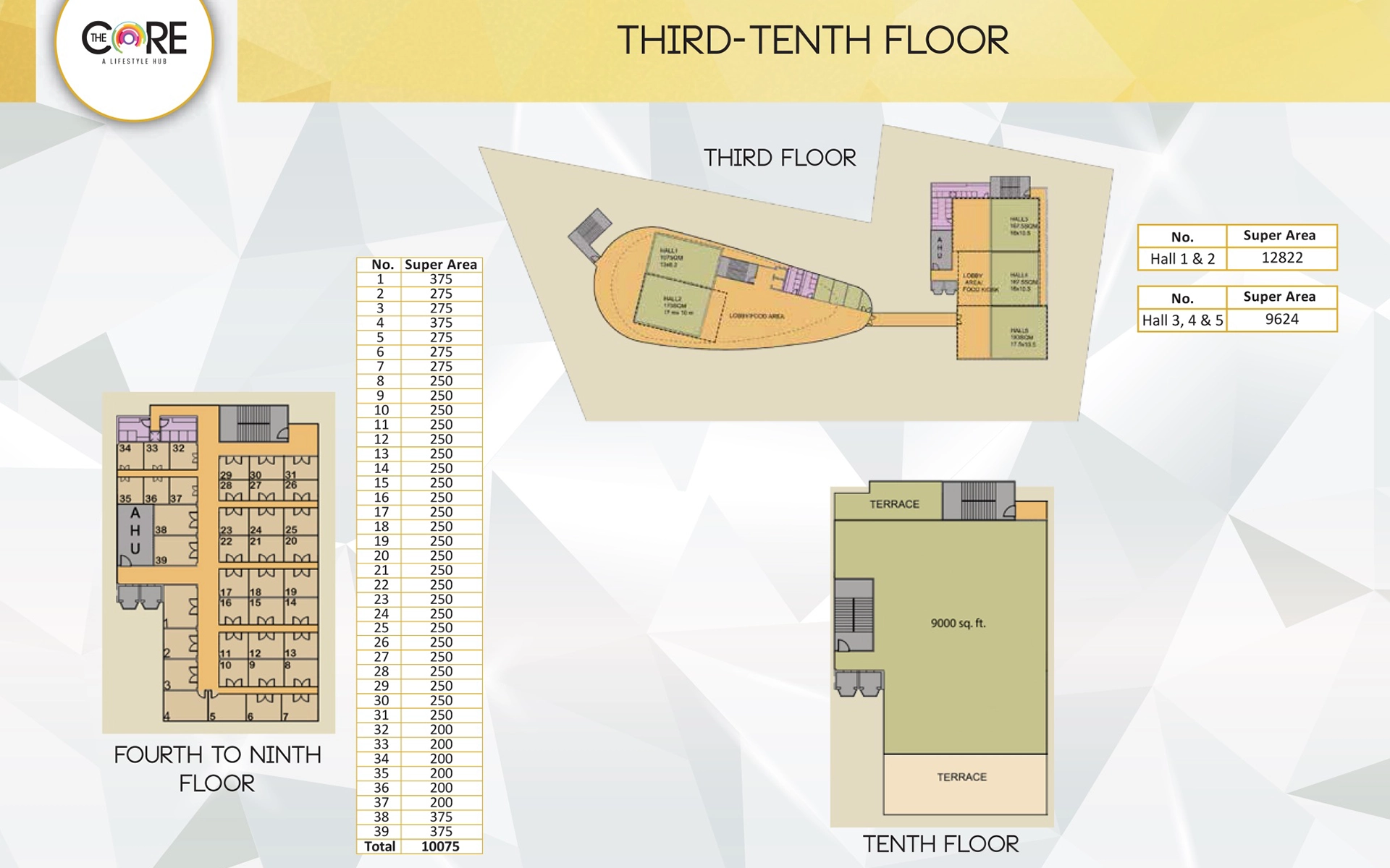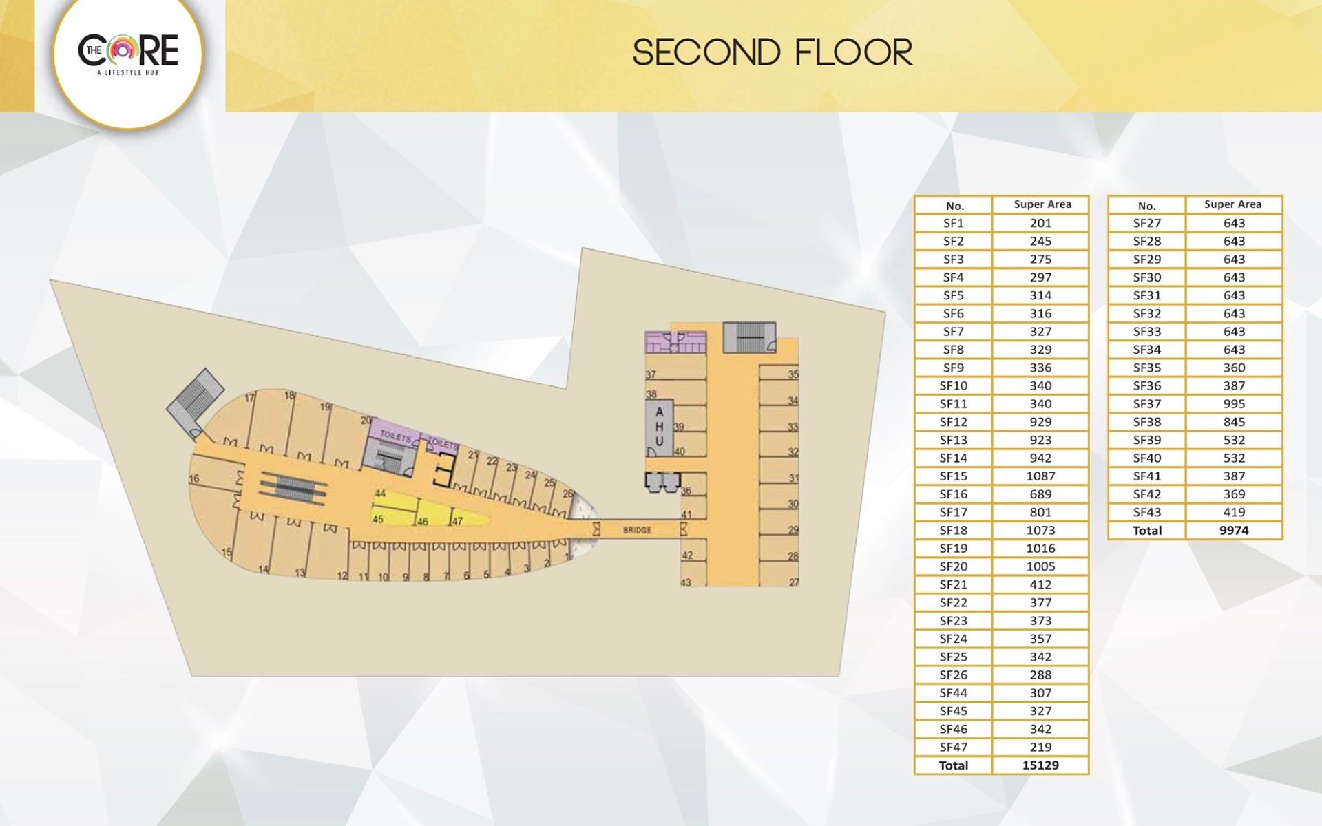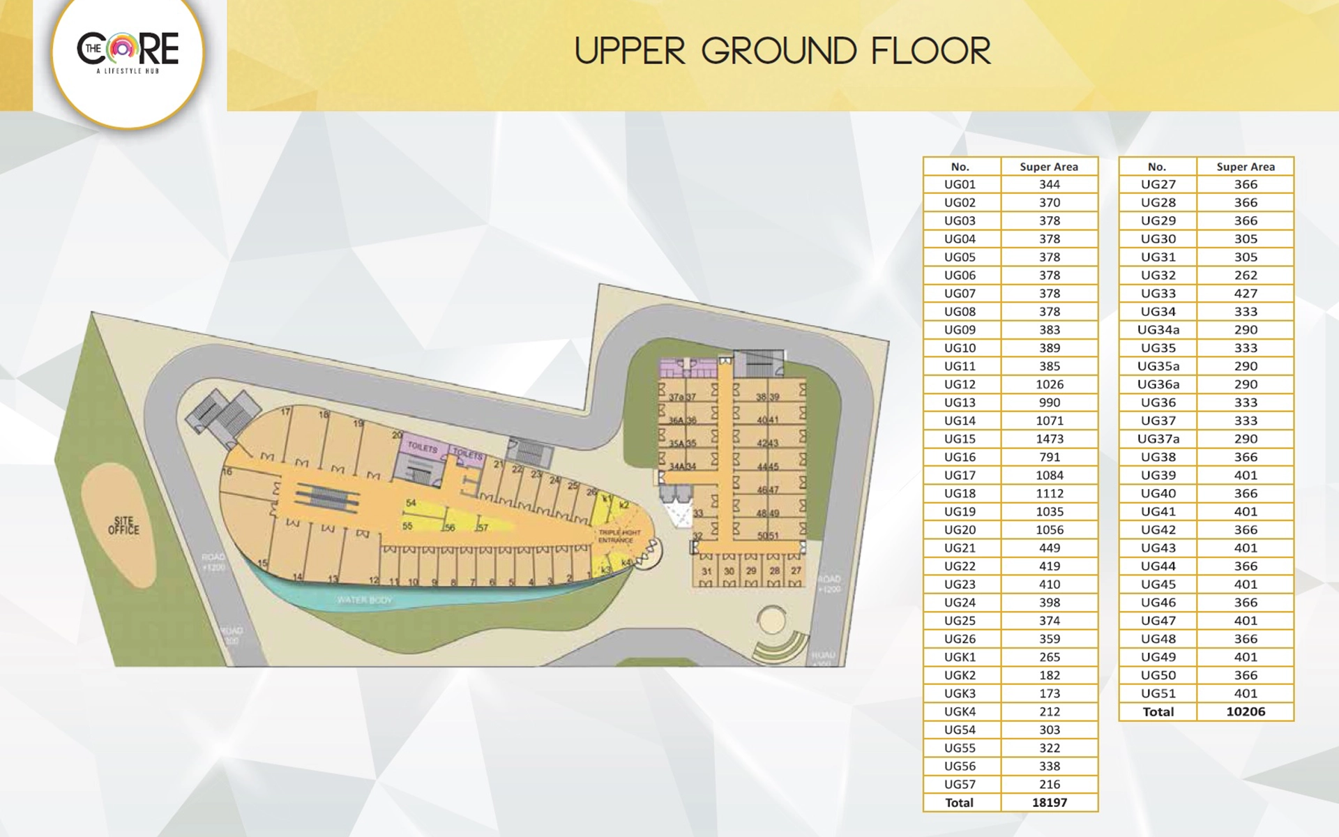 The different levels of The Core Mall have been planned in such a way that retail shops, commercial units, and visitor movement are distributed in a balanced manner throughout the project.